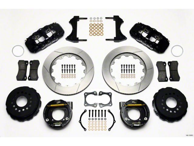 AERO4 Rear Parking Brake kits provide the ultimate Big Brake solution for popular muscle car rear axles that require a parking brake. Forged AERO4 four piston calipers, 14" two-piece rotors, and high performance BP-10 compound pads provide optimized and balanced braking to compliment front big brake upgrades on all types of custom, show and high performance street machines. The neatly hidden internal shoe system provides a clean installation with superior static holding power for parking. Optional caliper finishes and rotor designs allow builders to personalize the style and performance for every application.