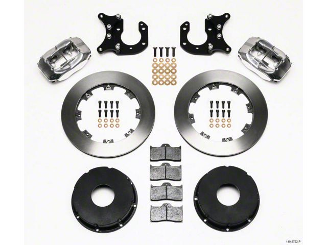 FDL Pro-Series rear disc brake kits provide a complete solution for popular muscle car rear axles on applications where individual wheel parking brake assemblies are not required. Forged billet Dynalite four piston calipers, two-piece hat and rotor assemblies, and high friction pads provide optimized and balanced braking for all types of off-road, competition, and other customized applications. FDL calipers can be optioned with a full range of finishes to reflect personalized style. Rotor choices provide options for high-tech show winning style, or heavy weight durability and cooling capacity for high heat competition.
