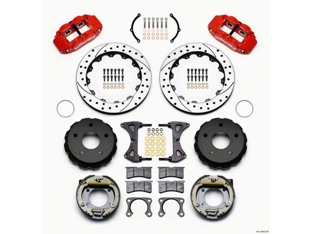 These versions of Forged Narrow Superlite 4R rear disc kits provide the ultimate Big Brake solution for Bronco 76-77 rear axles with Big Ford New Style flange and bearing. (normally: OE 11 inch diameter brakes and 3300 GVW.) Each includes a high efficiency drum style parking brake assembly. FNSL4R four piston calipers, 13" or 14" two-piece rotors, and high performance BP-10 compound pads provide optimized and balanced braking to compliment front big brake upgrades available for Bronco platform. The neatly hidden internal shoe system provides a clean installation with superior static holding power for parking. Optional caliper finishes and rotor designs allow builders to personalize the style and performance for every application.