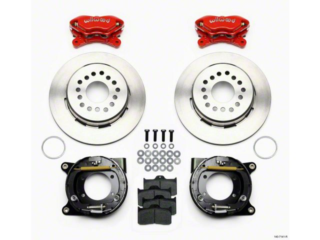 This group of FDL Pro-Series rear disc kits provides a complete solution for popular muscle car rear axles that require a parking brake. Forged billet Dynalite four piston calipers, 12.19" one-piece drum/rotors, and high friction pads provide optimized and balanced braking for all types of custom performance street/strip and show machines. The neatly hidden internal shoe system provides a clean installation with superior static holding power for parking. Optional caliper finishes and rotor designs enable the builder to personalize the style and optimize brake performance for every individual application.