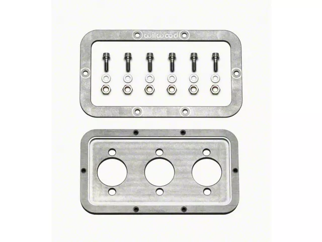 Wilwood's new billet aluminum Master Cylinder Firewall Mounting Kit, part number 250-13167. This mounting kit is specifically designed to work in conjunction with Wilwood's Forward Mount Brake and Clutch Pedal Assembly and Flange Mounted Compact Remote Master Cylinders. The kit allows precision mounting of the pedal and master cylinders to the firewall, and leaves the engine compartment with a high-tech pro-finish look. The mounting plates recess the master cylinder mounting surface by .25", which allows more clearance in the engine compartment. Both the engine compartment faceplate and interior side mounting plate are media burnished billet aluminum. The kit is designed to accept a firewall material thickness range of .040" - .080", and requires a minimum flat area the size of the 4" x 8" faceplate. Also provided is all mounting hardware, including attractive, corrosion resistant stainless steel 12 point fasteners, and detailed installation instructions.