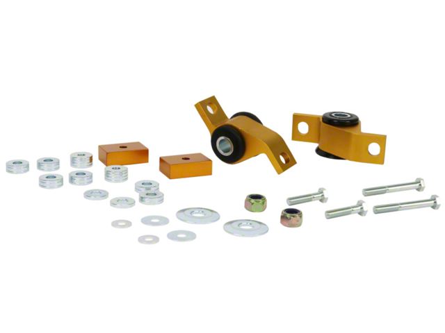 Whiteline Anti Lift Kits are primarily designed to improve traction and cornering grip under power. By increasing static caster and improving front end geometry the new alloy mounts coupled with low compliance synthetic elastomer bushings serve to dramatically sharpen initial turn-in response and reduce understeer.