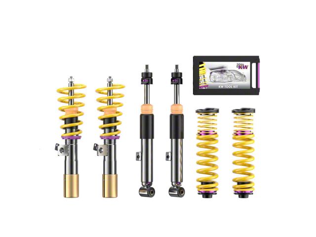 Cutting-edge motorsports technology for more performance on the road. Like every suspension product developed by KW automotive, the suspension manufacturer, and manufactured in Germany, the KW V3 Coilover suspension kit also provides a significant plus in safety reserves in road traffic. Thanks to the chassis with its high-quality dampers, springs, and elastomer spring elements, pitching and rolling movements during load changes such as evasive maneuvers, cornering, acceleration, and braking are significantly reduced. The braking distances are also shortened. Thanks to improved support and feedback, drivers not only feel safer but driving in everyday life becomes even safer. With compression and rebound stage damping, that can be set separately and independently of each other, the damper setup can be customized to your personal driving preferences or vehicle changes such as weight, tire characteristics, or altered vehicle rigidity. True performance optimization is only possible with this unique, patented system. For example, this allows the compression damping force to be increased and get more grip from the tires, to improve cornering behavior and reduce squat without simultaneously altering the rebound stage damping which is optimally matched to the spring rate, a scenario which results in reduced grip and the associated loss of performance. The KW V3 coilover kit is the ideal tool for performance-oriented drivers and experienced tuning enthusiasts who place a strong emphasis on the overall performance of their suspension. The Variant 3 features patented TVR-A and TVC-A technology that provides separately adjustable rebound and compression damping. The extensive adjustment range of the independently configurable rebound and compression make it easy to directly influence the steering behavior, directional stability, grip and handling characteristics for confident and repeatable results at the limit of driving dynamics.