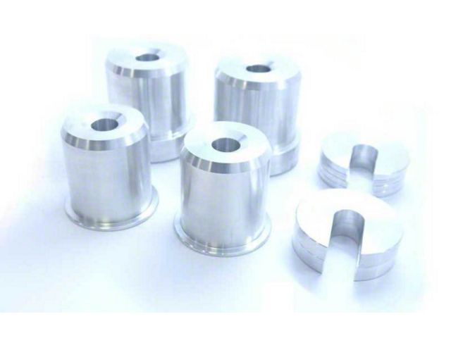 350Z/G35 Solid Aluminum Subframe Bushings (SSB) replace the stock mushy rubber bushings on your Nissan 350Z to eliminate free play of the subframe relative to the chassis. This prevents the subframe from "bouncing around" under drivetrain torque or suspension load, maintaining optimum suspension geometry and reducing wheel hop. Our slide-in shim system allows you to quickly raise or lower the subframe to fine-tune the roll center/anti-squat behavior to your preference. Raising the subframe will compensate roll center for a lowered car at the expense of increasing anti-squat. Lowering the subframe will decrease anti-squat at the expense of roll center. Now Formula Drift Regulation Compliant! With the recent regulation change in Formula D, we changed our kits to comply. You can maintain OEM height and be perfectly legal. Our SPL SOLID Series Bushings are precision CNC machined from Billet 6061 Aluminum for an accurate fit. This kit also includes optional rubber isolation washers to reduce noise transfer from the subframe to the chassis. Sold as a complete kit for one car. Made in the USA. Applications: Nissan 350Z (Z33) Infiniti G35 (V35) Installation Instructions: SPL Solid Subframe Bushings