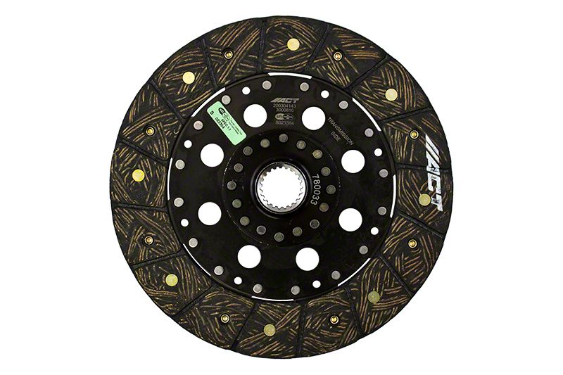 3000816 is a street rigid disc featuring premium organic materials with high copper content for better heat transfer and steel-backed lining for greater burst strength and durability. These discs are modified with reduced marcel for faster shift action to complement ACT pressure plates. The chrome-moly hub is heat-treated for strength and durability. Rivet design and materials are carefully selected for maximum strength. Lightweight, solid-hub design allows for quicker shifting and engagement. ACT's street rigid-hub discs provide race-proven performance with street manageability.