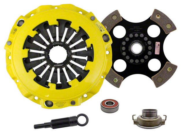 SB9-HDR4 kit features ACT's most popular Heavy Duty pressure plate. ACT Heavy Duty pressure plates use exclusive diaphragm design to increase clamp load, reduce deflection and maximize clutch life. All diaphragms endure a four-stage, heat-treating process for unparalleled performance. ACT pressure plates have precision cover stampings to provide rigidity and consistency. ACT's 4-pad rigid race discs are made with high quality, ceramic friction materials. The chrome-moly hub is heat-treated for strength and durability. The lightweight, rigid design allows for quicker shifts and smooth, trouble-free service. With the 4-pad rigid race disc engagement is harsher, but shifting is faster. The 4-pad rigid race disc is well-suited for the smaller disc sizes in smaller engines. Monoloc is a one-piece, direct replacement or upgrade to the standard, two-piece wedge collar and wire ring featured in pull-type clutches. The spring tension of the segmented retaining ring is carefully calculated and tested for optimal performance. It provides uniform loading on the bearing and pressure plate to assure proper alignment, regardless of driver influence or vehicle modifications. Monoloc's hardened chrome-moly steel construction will provide years of service.