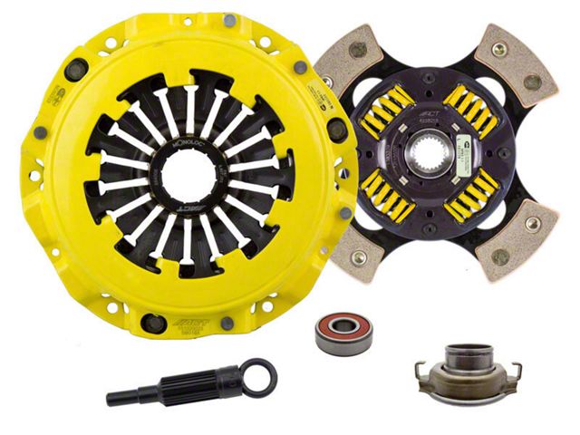 SB9-XTG4 kit features an Xtreme pressure plate for the most demanding driver. ACT Xtreme pressure plates use exclusive diaphragm design to increase clamp load, reduce deflection and maximize clutch life. All diaphragms endure a four-stage, heat-treating process for unparalleled performance. ACT pressure plates have precision cover stampings to provide rigidity and consistency. ACT's 4-pad spring-centered race disc features a spring-center construction to properly damp torsional vibrations for quieter operation and resist failure even under harsh conditions. ACT spring retainers utilize wraparound spring windows and thicker retainer stampings to provide spring support, reduce stress concentrations, and increase strength and reliability. With the 4-pad spring-centered race disc, engagement is harsher, but shifting is faster. ACT's 4-pad spring-centered race disc is well-suited for smaller disc sizes in smaller engines. Monoloc is a one-piece, direct replacement or upgrade to the standard, two-piece wedge collar and wire ring featured in pull-type clutches. The spring tension of the segmented retaining ring is carefully calculated and tested for optimal performance. It provides uniform loading on the bearing and pressure plate to assure proper alignment, regardless of driver influence or vehicle modifications. Monoloc's hardened chrome-moly steel construction will provide years of service.