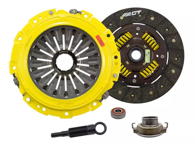 SB10-HDSS kit features ACT's most popular Heavy Duty pressure plate and most popular street disc. ACT Heavy Duty pressure plates use exclusive diaphragm design to increase clamp load, reduce deflection and maximize clutch life. All diaphragms endure a four-stage, heat-treating process for unparalleled performance. ACT pressure plates have precision cover stampings to provide rigidity and consistency. ACT's Performance street discs are the most popular disc purchased. They feature premium organic materials with high copper content for better heat transfer and steel-backed lining for greater burst strength and durability. These discs feature a reduced marcel for faster shift action to complement ACT pressure plates. Quiet operation with increased strength and reliability. Monoloc is a one-piece, direct replacement or upgrade to the standard, two-piece wedge collar and wire ring featured in pull-type clutches. The spring tension of the segmented retaining ring is carefully calculated and tested for optimal performance. It provides uniform loading on the bearing and pressure plate to assure proper alignment, regardless of driver influence or vehicle modifications. Monoloc's hardened chrome-moly steel construction will provide years of service.