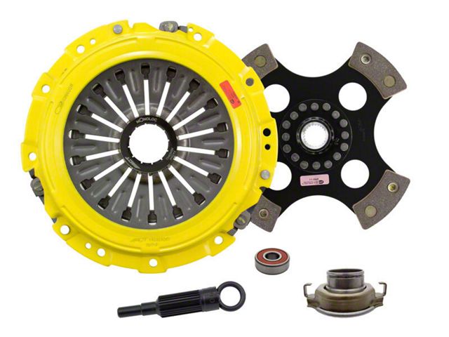 SB10-HDR4 kit features ACT's most popular Heavy Duty pressure plate. ACT Heavy Duty pressure plates use exclusive diaphragm design to increase clamp load, reduce deflection and maximize clutch life. All diaphragms endure a four-stage, heat-treating process for unparalleled performance. ACT pressure plates have precision cover stampings to provide rigidity and consistency. ACT's 4-pad rigid race discs are made with high quality, ceramic friction materials. The chrome-moly hub is heat-treated for strength and durability. The lightweight, rigid design allows for quicker shifts and smooth, trouble-free service. With the 4-pad rigid race disc engagement is harsher, but shifting is faster. The 4-pad rigid race disc is well-suited for the smaller disc sizes in smaller engines. Monoloc is a one-piece, direct replacement or upgrade to the standard, two-piece wedge collar and wire ring featured in pull-type clutches. The spring tension of the segmented retaining ring is carefully calculated and tested for optimal performance. It provides uniform loading on the bearing and pressure plate to assure proper alignment, regardless of driver influence or vehicle modifications. Monoloc's hardened chrome-moly steel construction will provide years of service.