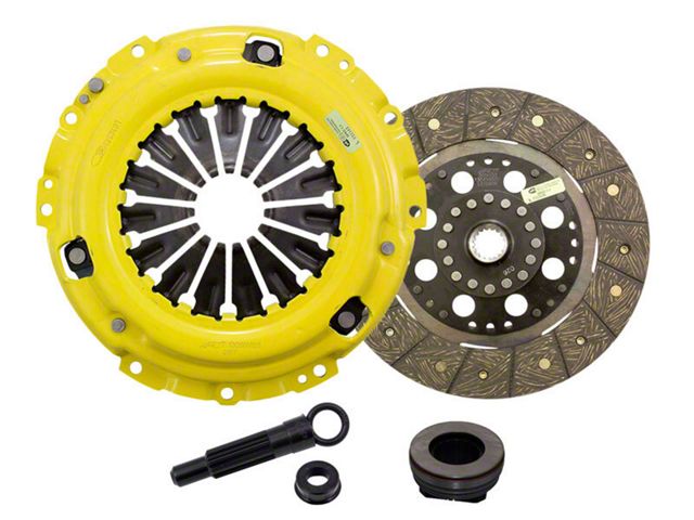 DN3-HDSD kit features ACT's most popular Heavy Duty pressure plate. ACT Heavy Duty pressure plates use exclusive diaphragm design to increase clamp load, reduce deflection and maximize clutch life. All diaphragms endure a four-stage, heat-treating process for unparalleled performance. ACT pressure plates have precision cover stampings to provide rigidity and consistency. The ACT performance street rigid-hub discs feature premium organic materials with high copper content for better heat transfer and steel-backed lining for greater burst strength and durability. The chrome-moly hub is heat-treated for strength and durability. Rivet design and materials are carefully selected for maximum strength. These discs are the minimum weight street disc for faster shifts. ACT's street rigid-hub discs provide race-proven performance with street manageability.