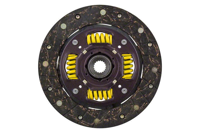 2001401 is a modified spring-centered street disc featuring premium organic friction material with high copper content for better heat transfer and steel-backed lining for greater burst strength and durability. These discs are modified with reduced marcel for faster shift action to complement ACT pressure plates. The heavy duty torsional dampening springs are stronger, in most cases, than standard springs and are provided in the best sizes and spring rates to suit the application. Modified street discs allow for quicker shifting and engagement. Quiet operation with increased strength and reliability.