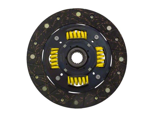 2001403 is a modified spring-centered street disc featuring premium organic friction material with high copper content for better heat transfer and steel-backed lining for greater burst strength and durability. These discs are modified with reduced marcel for faster shift action to complement ACT pressure plates. The heavy duty torsional dampening springs are stronger, in most cases, than standard springs and are provided in the best sizes and spring rates to suit the application. Modified street discs allow for quicker shifting and engagement. Quiet operation with increased strength and reliability.