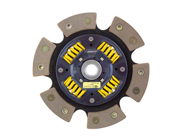 6224704 is a 6-pad spring-centered race discs made with high quality ceramic friction materials. The engagement is harsher, but shifting is faster. The heavy duty torsional dampening springs are stronger, in most cases, than standard springs and are provided in the best sizes and spring rates to suit the application. The 6-pad, spring-centered disc is recommended for larger clutch sizes to absorb more heat and for smoother engagement.