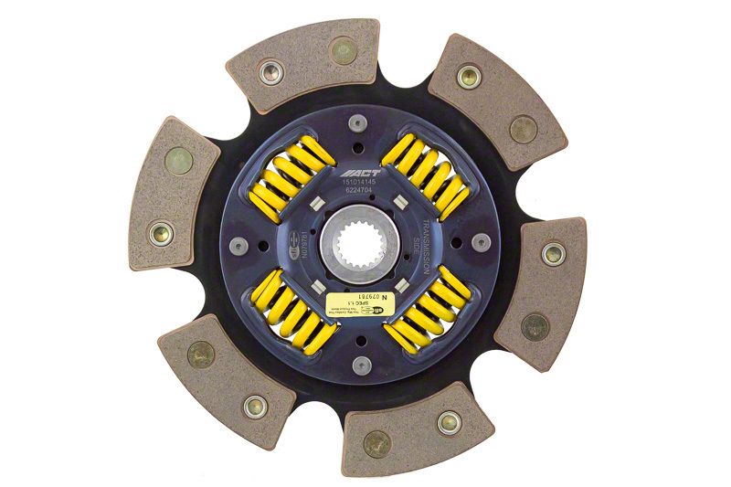 6224704 is a 6-pad spring-centered race discs made with high quality ceramic friction materials. The engagement is harsher, but shifting is faster. The heavy duty torsional dampening springs are stronger, in most cases, than standard springs and are provided in the best sizes and spring rates to suit the application. The 6-pad, spring-centered disc is recommended for larger clutch sizes to absorb more heat and for smoother engagement.