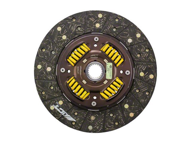 3000607 is a performance street disc and the most popular disc purchased. It features premium organic materials with high copper content for better heat transfer. Performance street discs allow for quicker shifting and smooth engagement. These discs feature a reduced marcel for faster shift action to complement ACT pressure plates. ACT spring-centered assemblies use bushings and cone springs similar to factory clutch discs. This creates frictional dampening, which improves clutch life and reduces noise. Quiet operation with increased strength and reliability.