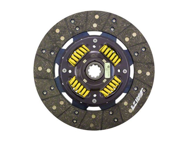 3001110 is a performance street disc and the most popular disc purchased. It features premium organic materials with high copper content for better heat transfer. Performance street discs allow for quicker shifting and smooth engagement. These discs feature a reduced marcel for faster shift action to complement ACT pressure plates. ACT spring-centered assemblies use bushings and cone springs similar to factory clutch discs. This creates frictional dampening, which improves clutch life and reduces noise. Quiet operation with increased strength and reliability.