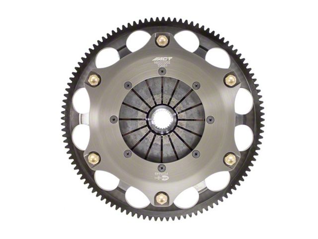 T1RR-N02 race, twin disc kits are race-ready for the serious enthusiast who needs a direct bolt-in kit, requiring no additional modifications. ACT's sintered iron race discs offer the highest torque capacity of all ACT race discs and have ultra-high heat capacity. Most kits offer pedal loads 10-20% higher than stock, yet increasing the clamp load by 80-90%. All ACT twin disc kits include a CNC-machined and dynamically balanced flywheel for trouble free use. All kits undergo an exclusive four-stage, heat-treating process on all diaphragms. ACT twin disc kits include a pressure plate, two discs, floater, flywheel and alignment tool. Some kits may include a pilot bearing and release bearing. ACT Twin disc kits meet SFI Specification 1.2.