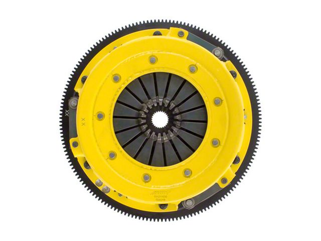 T2S-G05 street twin disc kit offers twice the number of disc surfaces for better wear, heat capacity and long life compared to single disc kits. These kits use a proprietary Positive Lift Floater System design, which results in quiet operation with no floater rattle and no posts to wear. ACT twin disc kits undergo an exclusive four-stage, heat treating process on all diaphragms. The ACT twin disc features the ability to adjust for disc wear and provides equal disengagement for discs. The ACT Performance street rigid-hub discs feature premium organic materials with high copper content for better heat transfer and steel-backed lining for greater burst strength and durability. The chrome-moly hub is heat-treated for strength and durability. Rivet design and materials are carefully selected for maximum strength. All ACT twin disc kits include a CNC-machined and dynamically balanced flywheel to ensure trouble-free installation and operation. ACT twin disc kits include a pressure plate, two discs, a floater, flywheel and alignment tool. Some kits may include a pilot bearing and release bearing.