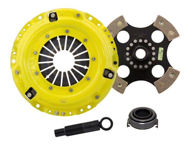 HP4-XTR4 kit features an Xtreme pressure plate for the most demanding driver. ACT Xtreme pressure plates use exclusive diaphragm design to increase clamp load, reduce deflection and maximize clutch life. All diaphragms endure a four-stage, heat-treating process for unparalleled performance. ACT pressure plates have precision cover stampings to provide rigidity and consistency. ACT's 4-pad rigid race discs are made with high quality, ceramic friction materials. The chrome-moly hub is heat-treated for strength and durability. The lightweight, rigid design allows for quicker shifts and smooth, trouble-free service. With the 4-pad rigid race disc, engagement is harsher, but shifting is faster. The 4-pad rigid race disc is well-suited for the smaller disc sizes in smaller engines.