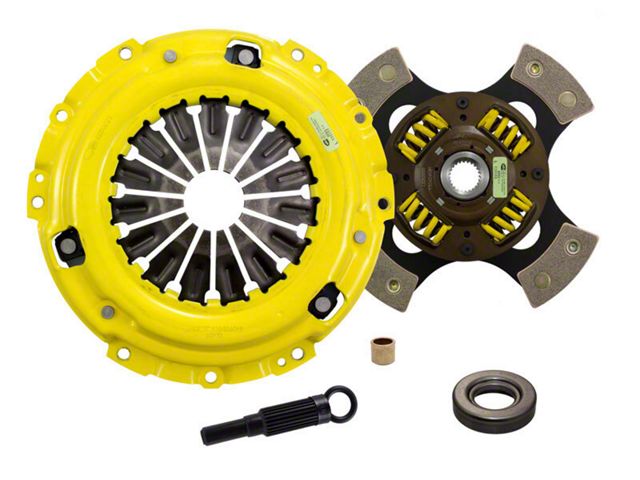 NS1-XTG4 kit features an Xtreme pressure plate for the most demanding driver. ACT Xtreme pressure plates use exclusive diaphragm design to increase clamp load, reduce deflection and maximize clutch life. All diaphragms endure a four-stage, heat-treating process for unparalleled performance. ACT pressure plates have precision cover stampings to provide rigidity and consistency. ACT's 4-pad spring-centered race disc features a spring-center construction to properly damp torsional vibrations for quieter operation and resist failure even under harsh conditions. ACT spring retainers utilize wraparound spring windows and thicker retainer stampings to provide spring support, reduce stress concentrations, and increase strength and reliability. With the 4-pad spring-centered race disc, engagement is harsher, but shifting is faster. ACT's 4-pad spring-centered race disc is well-suited for smaller disc sizes in smaller engines.