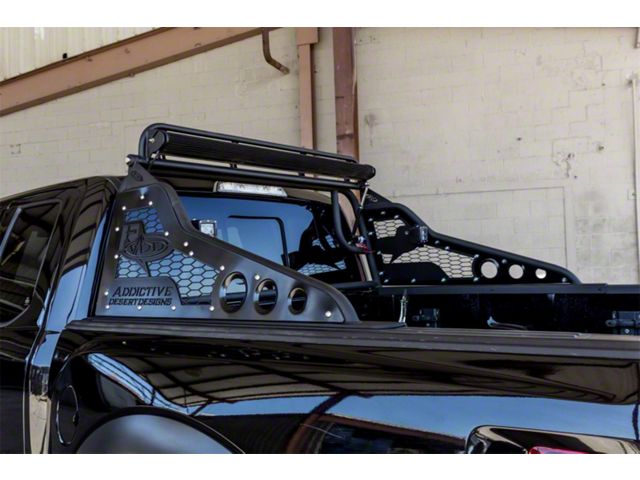 A redesigned Race Series R chase rack specifically made for the 2017 Ford Raptor adds a head turning style to your Ford Raptor. With all the same benefits and features of our original Race Series R chase rack, the 2017 Raptor version has an upgraded honeycomb style paneling to match the look of the 2017 Ford Raptor. The Race Series R chase rack gives your truck additional mounting options for lighting during those off-road night adventures. Featuring our light actuator kit to raise and lower a front facing Rigid Industries 50 in. LED bar so you can tuck it away when not in use. Light mount tabs for rear facing Duallys provide your Ford Raptor with some additional lighting for anything behind your truck.