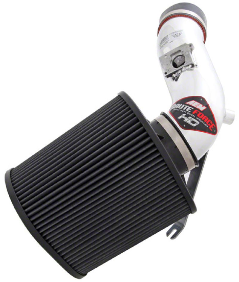 The AEM 21-9113DP Brute Force HD Diesel Air Intake System produces horsepower and torque gains by replacing the vehicle's restrictive factory air filter and air intake housing. This air intake system was designed, tuned and dyno-tested to fit specific Ford 250/350/450 Super Duty and Excursion models. Air enters the system through an extra-large AEM Dryflow synthetic washable air filter for outstanding air flow, filtration and performance. The air filter is located in the original air box space which is designed to reduce intake air temperature and increase horsepower. The intake tubing is constructed from mandrel-bent aluminum featuring a durable chrome-like finish. This air intake system was developed to accommodate the engine's factory emissions control devices including the mass air flow sensor, IAT sensor and filter minder gauge. The oval cone shaped AEM Dryflow air filter is made from an oil-free, synthetic filter media that can be used for up to 100,000 miles before cleaning is needed (depending on driving conditions). The air intake system is easy to install with commonly available tools and it is backed by AEM's Lifetime Limited Warranty. Some AEM air intakes are not legal for sale or use in California and other states adopting California emission standards while others are 50 state legal. View the 21-9113DP vehicle applications to determine the legal status for each vehicle.