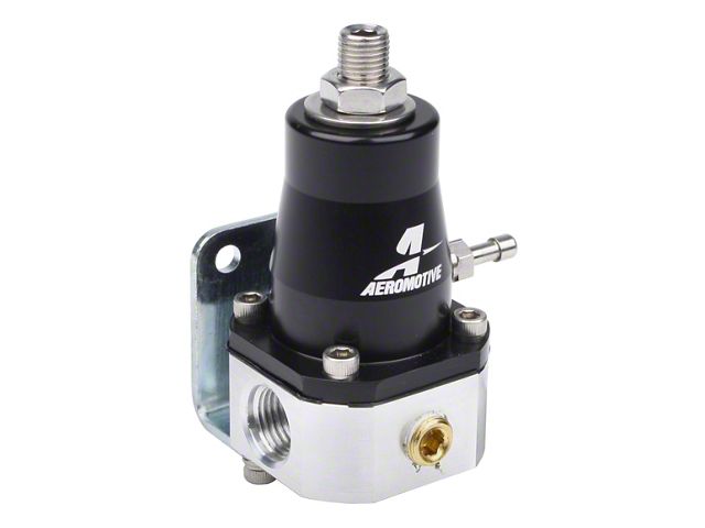 This EFI Bypass Regulator encompasses features and benefits only found on Aeromotive regulators and in a new smaller and lighter package. Capable of supporting applications up to 1000 HP, the 13129 EFI Bypass Regulator can handle high-flow EFI fuel pumps and the most aggressive street machines; especially those looking for a cleaner, lighter solution where performance is critical or where space is a premium. Base pressure adjustable from 40-75 psi. Fuel pressure rises on a 1:1 ratio with boost. Provides (2) ORB-06 inlet/outlet ports and (1) ORB-06 return port. 1/8? NPT gauge port. Bright Dip Black Anodized Finish. Vacuum boost port. CNC-Machined 6061 T6 billet aluminum construction.