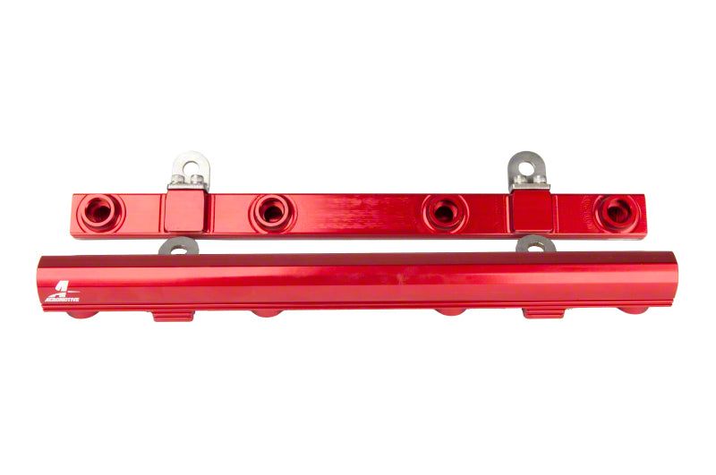 Aeromotive High Flow, Billet Fuel Rails combine 3,000 HP flow capabilities with 'bolt-on' ease of installation. Fits 2011+ 5.0L Ford Modular Engines. ORB-08 Ports with compact connections and positive, leak-free sealing. Full 5/8' ID through bore, capable of supporting up to 3,000 HP. Full size ports ORB-08 ports at each end for optimal injector supply and minimal hydraulic fluctuation. CNC-machined, billet aluminum construction for unequalled fit and finish. Steel mounting brackets, custom engineered for this application, combining a solid, durable mounting platform with correct fit and 'bolt-on' ease of installation.