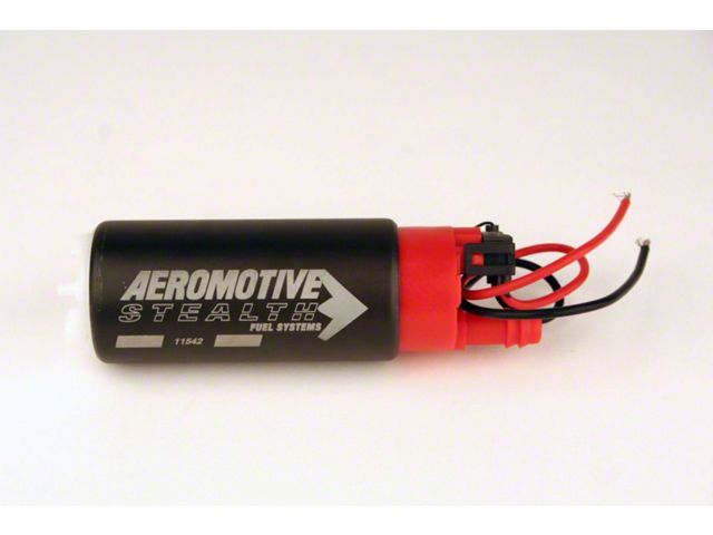 The Aeromotive 340 Stealth Fuel Pump is a high-output, in-tank, electric fuel pump that fits most popular EFI applications. The Aeromotive 340 is a compact, lightweight pump that bolts into many existing hanger assemblies. What sets the 340 Stealth Pump apart is its superior flow throughout a wide pressure range. Compared to other popular aftermarket pumps, at 40 psi the 340 boasts more than 340 lph. That's over 30% more flow. This pump is ideal for applications requiring more flow while retaining the factory lines and mounting provisions available in the Original Equipment (O.E.) configuration. The 340 is also perfect for use as a universal replacement for applications that require more flow to support forced air power adders such as turbo and supercharged applications. Fits most vehicles where popular aftermarket pumps are applicable. Offset Inlet, In-line with outlet - E85 Compatible. OEM 39mm Body. Includes universal filter sock. Designed for in-tank use only. Can be used in carbureted or EFI applications. Turbine pump mechanism increases durability and can be used in pulse modulated applications. P/N 11542 Includes: 340 Stealth Pump, Universal Drop Parts Kit (Filter, Wiring Pigtail, Rubber Hose, (2) Clamps, Rubber Grommet). Supersedes P/N 11142.