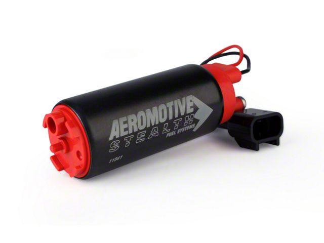 The Aeromotive 340 Stealth Fuel Pump is a high-output, in-tank, electric fuel pump that fits most popular EFI applications. The Aeromotive 340 is a compact, lightweight pump that bolts into many existing hanger assemblies. What sets the 340 Stealth Pump apart is its superior flow throughout a wide pressure range. Compared to other popular aftermarket pumps, at 40 psi the 340 boasts more than 340 lph. That's over 30% more flow. This pump is ideal for applications requiring more flow while retaining the factory lines and mounting provisions available in the Original Equipment (O.E.) configuration. The 340 is also perfect for use as a universal replacement for applications that require more flow to support forced air power adders such as turbo and supercharged applications. Fits most vehicles where popular aftermarket pumps are applicable. Offset Inlet, In-line with outlet. E85 Compatible. OEM 39mm Body. Includes universal filter sock - may not fit in some applications (see OEM filter replacement recommendations). Designed for in-tank use only. Can be used with carbureted or EFI applications. Turbine pump mechanism increases durability and can be used in pulse modulated applications. P/N 11541 Includes: 340 Stealth Pump, Universal Drop Parts Kit (Filter, Wiring Pigtail, Rubber Hose, (2) Clamps, Rubber Grommet). Supersedes P/N 11141.