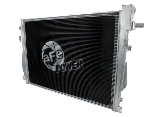 This BladeRunner Street Series Radiator features a 1-7/8" thick tube and fin core which provides greater heat dissipation and better coolant flow than the factory radiator for optimum cooling efficiency. The fabricated end tanks are constructed out of 1/8" aluminum plates for strength and durability. Billet aluminum inlet and outlet for long-lasting reliability. 100% TIG-welded for proven strength and durability. BladeRunner Street Series Radiators include a brass drain valve with fitting to easily connect a hose for draining coolant. Utilizes the factory mounting locations to provide stability for a hassle-free installation. Brushed aluminum finish with an aFe POWER logo painted on the front.
