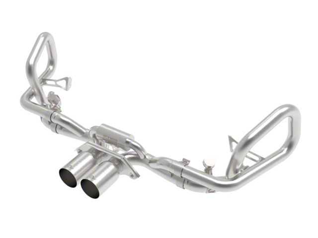 This cat-back exhaust system is constructed of 2-1/2 IN - 2 IN mandrel-bent brushed finished 304 stainless steel tubing for maximum strength and durability. Finishing off this exhaust system are dual 4 IN diameter brushed 304 stainless steel exhaust tips. The tips features a laser etched aFe POWER logo for a unique style. This system produces an aggressive sound unleashing all available horsepower and torque. Utilizing factory style flanges and hangers this system is a direct bolt-on system, which requires no cutting or modifications for a hassle-free installation. This system features a crossover balance tube designed to equalize and distribute exhaust pulses reducing drone, and improving sound. This system incorporates factory style pneumatic exhaust valves. The valves open the 2-1/2 Muffler bypass tube or direct the flow through the 2 IN loop pipe that replaces the factory side mufflers. A mitered merge collector is used to decrease turbulence and increase exhaust velocity resulting in increased horsepower, torque and improved throttle response. State-of-the-art computer-aided design technology is utilized for precise vehicle fitment. 100% TIG-Welded for race-proven strength and durability.