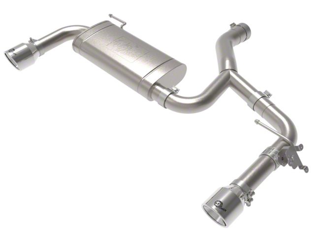 This axle-back exhaust system is constructed of 3 IN - 2-1/2 IN mandrel-bent 304 stainless steel tubing for maximum strength and durability. This system features a high-flow 304 stainless steel polished muffler, producing a mild sound. The muffler has a polished finish for ultimate corrosion resistance. Finishing off this exhaust system are dual 4 IN diameter polished 304 stainless steel clamp-on exhaust tips. The tips features a laser etched aFe POWER logo for a unique style. This system produces a mild sound unleashing all available horsepower and torque. Some cutting may be required, see instruction sheet for further information. Utilizing factory style hangers this system mounts directly to factory mounting locations for a hassle-free installation. This system incorporates a factory style exhaust valve which use the factory exhaust valve motor (not included). The valve helps regulate, direct and control the flow of exhaust gases by opening, closing, or partially obstructing passageways depending on throttle position for maximum performance. A mitered merge collector is used to decrease turbulence and increase exhaust velocity resulting in increased horsepower, torque and improved throttle response. Utilizing state-of-the-art computer-aided design technology, this exhaust system is designed for custom, high tolerance factory fitment. 100% MIG-Welded for race-proven strength and durability.