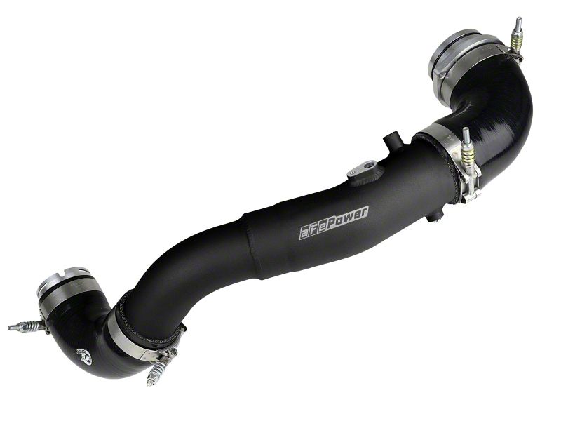 Smooth transitions in the mandrel-bent aluminum tubing decrease turbulence and minimize pressure loss, increasing horsepower and torque. This tube kit includes high-quality, stainless-steel, spring-loaded T-bolt clamps and heavy-duty, 5-ply, polyester reinforced silicone couplings. This intercooler tube kit features a factory style billet aluminum quick-connect adapter with an O-ring seal to ensure a leak-free fit while maintaining superior strength and durability. Finished in Wrinkle Black powder coating with a unique laser-etched aFe power logo for a custom look.