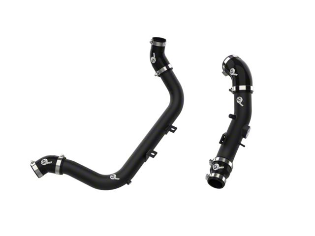 Smooth transitions in the mandrel-bent aluminum pipes decrease turbulence and minimize pressure loss, increasing horsepower and torque. This charge pipe kit provides a smooth transition between the turbo and the engine for lower operating temperatures and increased power. This kit includes high-quality, stainless-steel, SmartSeal clamps and heavy-duty, 5-ply, polyester reinforced silicone couplings for superior strength and durability. Finished in wrinkle black powder coating with a unique laser-etched aFe POWER logo for a custom look.