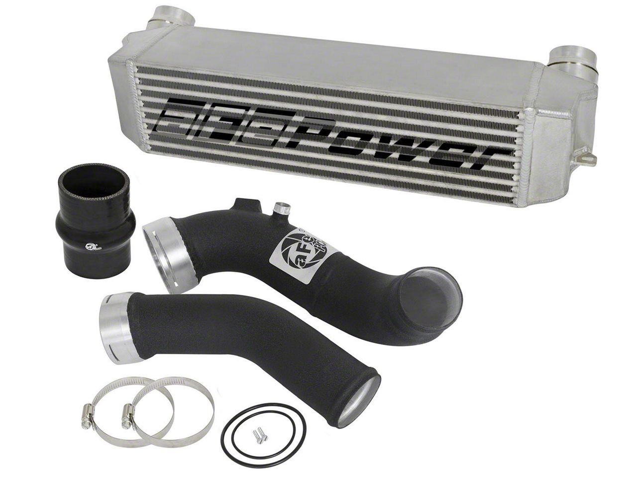 End Tanks: The unique BladeRunner end tanks are constructed out of 3/16 inch thick aluminum plates and include two 1/8 inch NPT ports for sensors or water-methanol injection. 5 inch Bar and Plate Core Design: The use of the bar and plate core design allows for greater airflow and increased heat dissipation over the much smaller tube and fin design used by the factory. TIG-Welded: 100 percent TIG-Welded inside and out by a certified craftsmen for strength and durability. TIG-Welding provides the strongest welds while reducing stress cracks. Pressure Tested: The BladeRunner Intercooler is test pressure rated at 200psi. Mandrel-bent Tubing: Constructed of 2-1/2 inch to 3 inch mandrel-bent aluminum tubing and powder-coated wrinkle-black for heat and corrosion resistance. The smooth transition mandrel bends decrease turbulence which increases horsepower and torque. The high-temp wrinkle-black powder-coating insulates the tubes from engine heat and protects them from corrosion. aFe Badging: Unique aluminum laser-cut aFe Power logo plate is welded-on for an aggressive style. Perfect Fit: Includes stainless steel clamps for a leak-free seal and heavy-duty 5-Ply reinforced silicone coupling for strength.