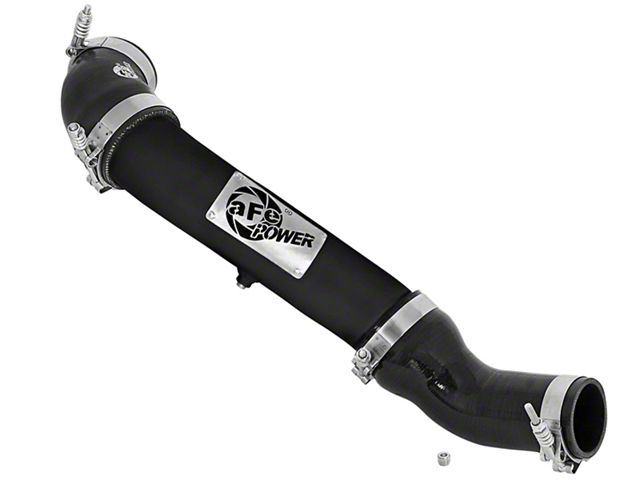 Flow and Performance: Constructed of 3" mandrel bent, powder-coated aluminum tubing for maximum flow. The smooth transition bends decrease turbulence and minimize pressure loss, increasing horsepower, torque and lowering EGT's. Installs on the Hot Side to transfer heated air smoothly to the intercooler to accelerate heat transfer for better performance. Perfect Fit: Utilizes the factory mounting locations to provide stability for a hassle-free installation. Includes high quality stainless steel spring loaded t-bolt clamps and heavy-duty 5-Ply couplings for strength. Fits OEM or aFe's upgraded intercooler (46-20281). aFe Badging: A unique stainless steel laser-cut aFe power logo plate is welded-on for an aggressive style