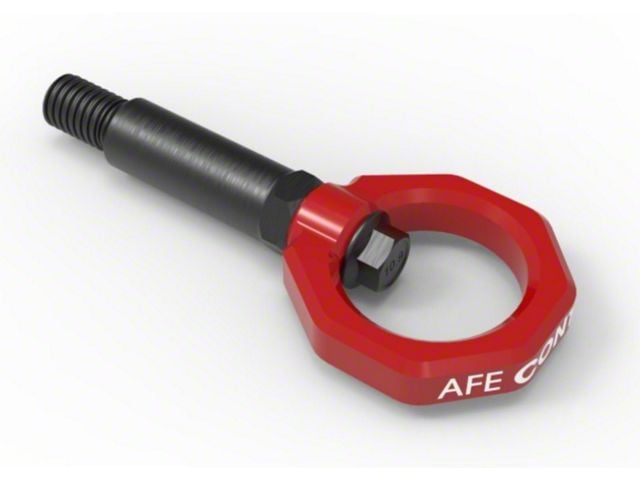 Add aggressive styling, and useful functionality to your BMW with aFe Control's front tow hook. It's sleek design not only looks great but is strong enough to safely winch your car onto a tow truck or get towed trackside if the need arises. Our BMW specific CNC machined stem and loop is made of 4130 steel. The stem is black zinc coated for corrosion resistance. The loop is powder coated Red (Blue, Black, and Gray are available). This is not a universal tow hook. The stem was specifically designed for the BMW and the length was carefully determined to fit the front bumper. A proper rear tow hook to match is also available. (p/n 450-502002-R) Both the stem and bolt threads are pre-coated with Vibra-tite threadlocker. This keeps your tow hook from loosening due to vibration. The special threadlocker is designed to remain flexible, removable, and reusable.