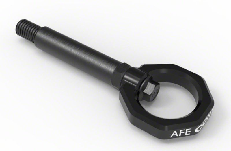 Add aggressive styling, and useful functionality to your BMW with aFe CONTROL rear tow hook. It's sleek design not only looks great but is strong enough to safely winch your car onto a tow truck or get towed trackside if the need arises. Our BMW specific CNC machined stem and loop is made of 4130 steel. The stem is black zinc coated for corrosion resistance. The loop is powder coated Black (Red, Blue, and Gray are available). This is not a universal tow hook. The stem was specifically designed for the BMW and the length was carefully determined to fit the rear bumper. A proper front tow hook to match is also available. (p/n 450-502001-B) Both the stem and bolt threads are pre-coated with Vibra-tite threadlocker. This keeps your tow hook from loosening due to vibration. The special threadlocker is designed to remain flexible, removable, and reusable.