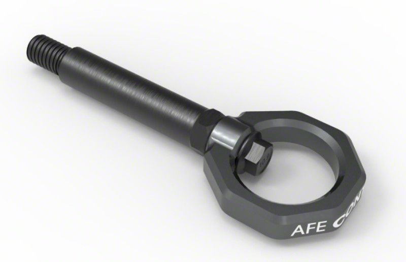Add aggressive styling, and useful functionality to your BMW with aFe CONTROL rear tow hook. It's sleek design not only looks great but is strong enough to safely winch your car onto a tow truck or get towed trackside if the need arises. Our BMW specific CNC machined stem and loop is made of 4130 steel. The stem is black zinc coated for corrosion resistance. The loop is powder coated Gray (Red, Blue, and black are available). This is not a universal tow hook. The stem was specifically designed for the BMW and the length was carefully determined to fit the rear bumper. A proper front tow hook to match is also available. (p/n 450-502001-G) Both the stem and bolt threads are pre-coated with Vibra-tite threadlocker. This keeps your tow hook from loosening due to vibration. The special threadlocker is designed to remain flexible, removable, and reusable.