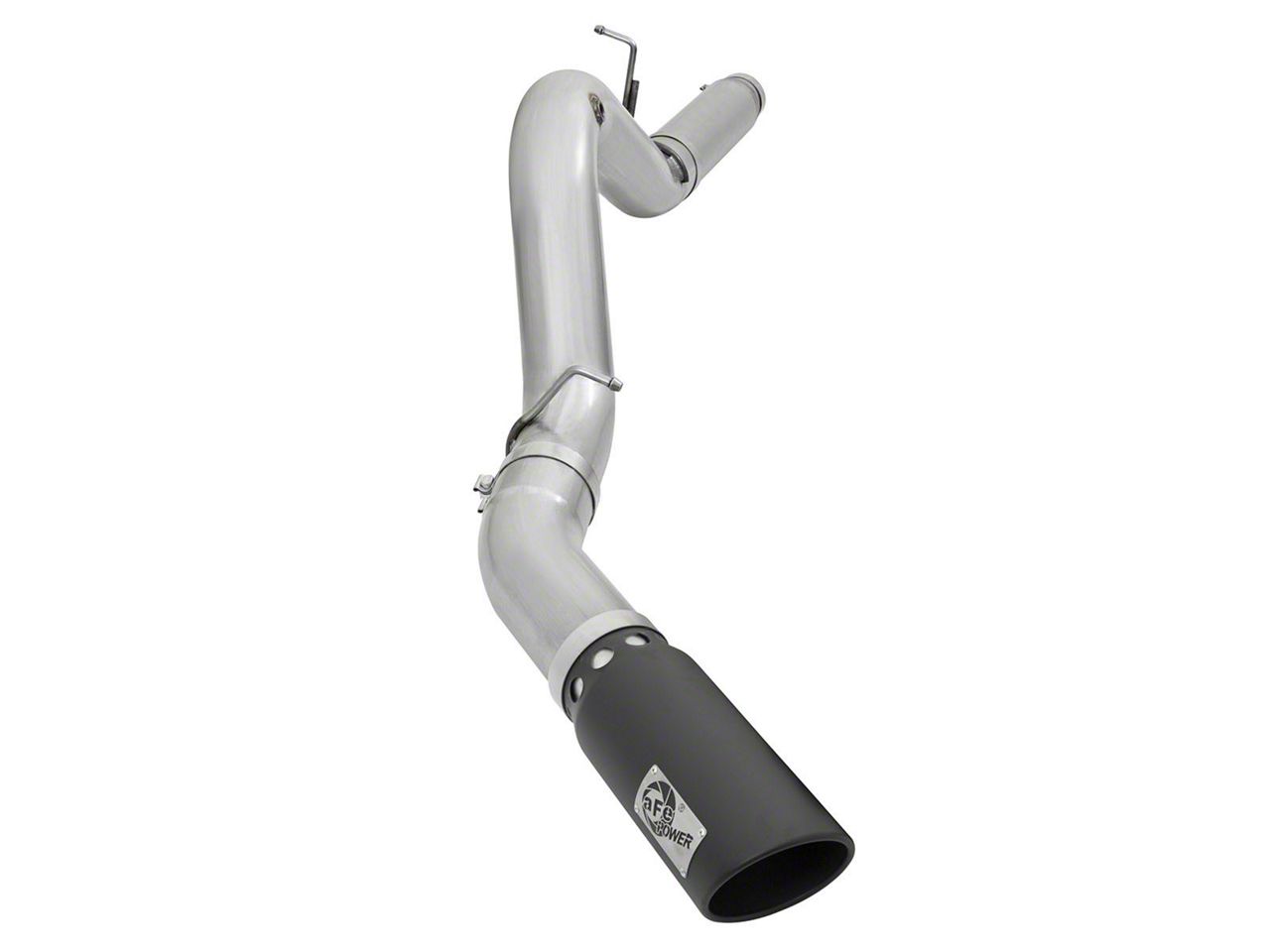 Simple Installation: All systems use factory mounting locations providing stability and hassle-free installation. Leak-Free Seal: High quality band clamps are included for a complete 360 degree sealing surface. OE Fit: OE-style bayonet hangers are used to maintain a stable pipe location during high vibration and high heat conditions. The bayonet tip holds the hanger bushing in place for an OE-style fit that does not change with time. Flow and Performance: This ATLAS exhaust system is constructed of 5" mandrel-bent aluminized steel tubing for maximum flow. Smooth transition bends allow for low turbulence, increasing horsepower, torque and lowering EGT's. 6" Diameter Black Intercooled Tip: Finishing off the exhaust is a 6" diameter, black, stainless steel slash cut tip with intercooling vents designed to reduce exhaust gas temperatures at the tailpipe. A unique stainless steel laser-cut aFe Power logo plate is riveted on for an aggressive style.