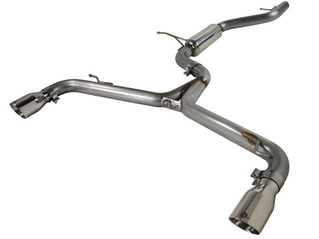 In recent testing this Mach Force XP cat-back exhaust system produced 10 horsepower and 9 lbs. x ft. of torque. This exhaust system is constructed out of mandrel bent, 2.50 IN stainless steel and includes MIG welded hangers and OE style band clamps for a simple, leak-free bolt-on installation. A 2.50 IN high flow resonator is used to keep exhaust drone to a minimum while maintaining a sporty sound. aFe utilizes 3.5 IN double wall, angle cut, polished, stainless steel dual tips with an aFe laser etched logo which provides an aggressive yet elegant look.