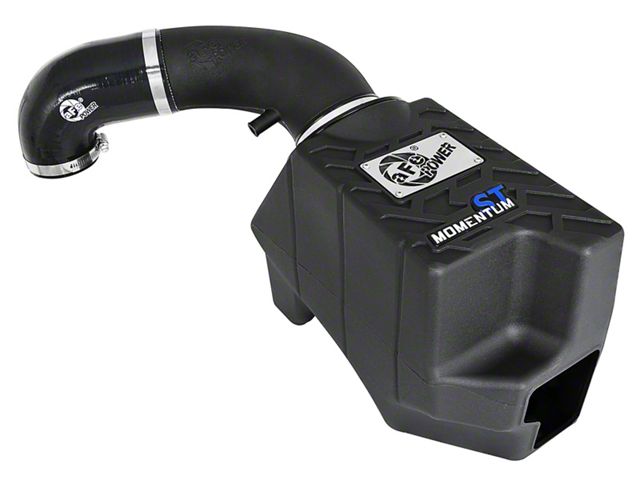 Unique One-Piece Sealed Housing: The smooth one-piece sealed housing with auxiliary air scoop is used to eliminate the use of multiple-piece housings and ensure the coldest air intake charge available. A urethane plug is also included if you wish to completely seal the auxiliary air scoop. High Quality Tube: This system uses a high quality plastic CAD designed, dyno-tuned, roto-molded intake tube to achieve maximum power gains while maintaining a perfect fit. Large 5-Layer Performance Air Filter: This Momentum ST intake system was designed around the largest filter possible to allow maximum performance and filtration. This cone filter has a massive round flange and is 8" tall inverted top Pro 5R filter media. The Pro 5R performance air filter features 5-layers of progressively finer mesh cotton gauze oiled media and is constructed with 100% polyurethane frame for long life and multiple cleaning cycles. Premium Hardware: Premium stainless steel T-bolt clamps and a silicone coupler at the throttle body is used for strength and durability while also providing the most secure installation available. Momentum ST intakes are designed with fewer parts for a quick and simple installation.
