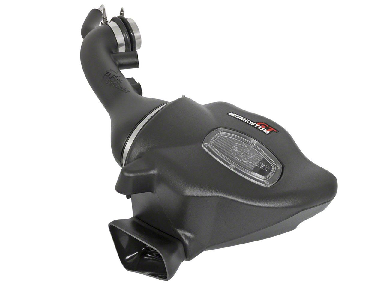 This Momentum GT intake system produces 15hp, 11lbs x ft of torque. The one-piece sealed housing includes auxiliary air inlet to eliminate the use of multiple-piece housings and ensure the coolest air intake charge available. A large, clear sight window is used for a hassle-free filter inspection and an aggressive style. A urethane plug is also included if you wish to block off the auxiliary air inlet. This system uses a high quality, dyno-tuned intake tube to achieve maximum power gains while maintaining a perfect fit. A custom high temperature reinforced silicone elbow coupling with aluminum fitting is included for easy install to the factory breather line.