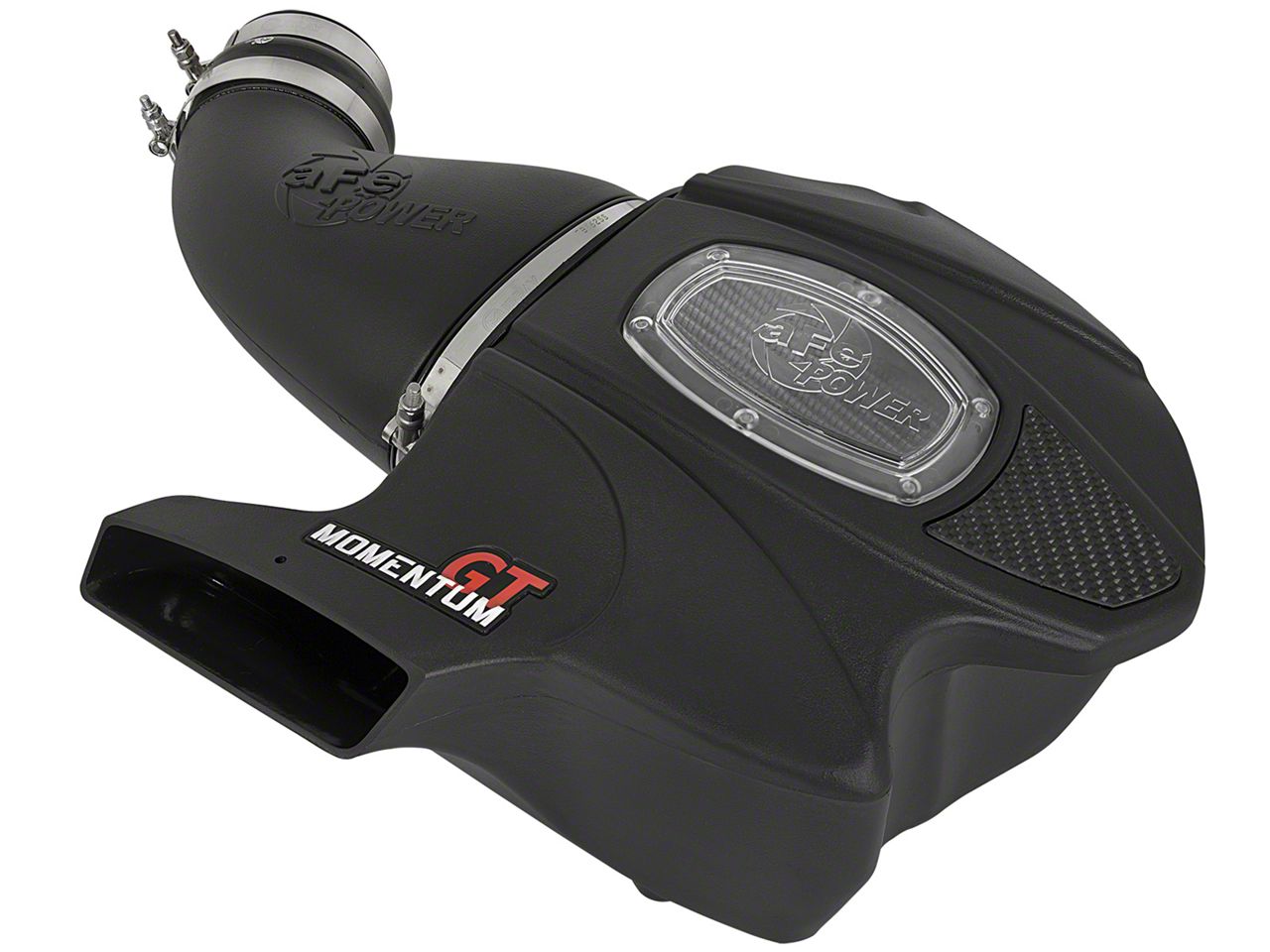 Unique One-Piece High Quality Housing W/ Sight Window: A custom CAD designed roto-molded housing made from heat soak resistant material eliminates the use of multiple components and ensures the coolest air intake charge available. A large clear sight window allows for filter inspection without removal of the air box. The roto-molded housing is made out of black cross-linked polyethylene. High Quality Tube: This system uses a high quality plastic, CAD designed, dyno-tuned, roto-molded intake tube to achieve maximum power gains while maintaining a perfect fit. Also included is a high quality billet aluminum air temp sensor fitting provided for easy installation. Large 3-Layer Performance Air Filter: This Momentum GT intake system was designed around the largest filter possible to allow maximum performance and filtration. This cone filter has a large (6-3/4" x 4-3/4") oval flange and is 9" tall with an inverted top. The Pro DRY S performance air filter features 3-layers of progressive finer porosity synthetic media providing maximum convenience with 100% polyurethane frame for long life and multiple cleaning cycles. Premium Hardware: Premium stainless steel T-bolt clamps and a reinforced silicone hump coupling are used for strength and durability while also providing the most secure installation available. Momentum intakes are designed with fewer parts for a quick and simple installation.