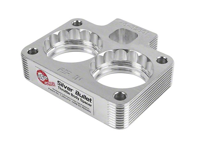 Silver Bullet throttle body spacers create turbulence in the air flow at the point just prior entry into the engine increasing horsepower, torque and improving throttle response and fuel efficiency. Silver Bullet throttle body spacers are constructed out of durable T-6061 billet aluminum and using a unique serrated/helix entry to create turbulence at the manifold while eliminating the annoying whistle found in other helix only throttle spacers.