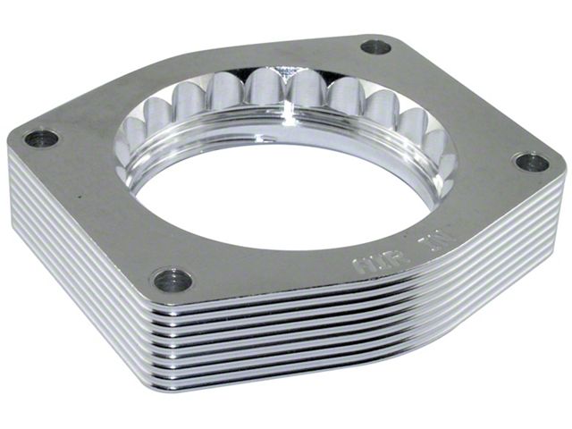 Silver Bullet throttle body spacers create turbulence in the air flow at the point just prior entry into the engine increasing horsepower, torque and improving throttle response and fuel efficiency. Silver Bullet throttle body spacers are constructed out of durable T-6061 billet aluminum and using a unique serrated/helix entry to create turbulence at the manifold while eliminating the annoying whistle found in other helix only throttle spacers.
