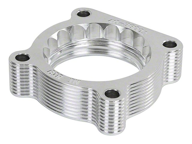 Silver Bullet throttle body spacers create turbulence in the air flow at the point just prior entry into the engine increasing horsepower, torque and improving throttle response and fuel efficiency. Silver Bullet throttle body spacers are constructed out of durable T-6061 billet aluminum and using a unique serrated/helix entry to create turbulence at the manifold while eliminating the annoying whistle found in other helix only throttle spacers.