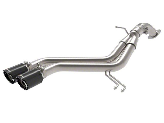 This system produced gains of up to +13 HP and +12 lbs. x Ft. TQ., as measured on our in-house dyno. This axle-back exhaust system is constructed of 2-1/2" mandrel-bent 304 stainless steel tubing for maximum strength and durability. Finishing off this exhaust system are dual 4" diameter carbon fiber 304 stainless steel clamp-on exhaust tips. The tips feature an aFe POWER logo for a unique style. This system produces a deep sound unleashing all available horsepower and torque. Utilizing a factory style flange and hangers this system is a direct bolt-on system, which requires no cutting or modifications for a hassle-free installation. Utilizing state-of-the-art computer-aided design technology, this exhaust system is designed for custom, high tolerance factory fitment. MIG-Welded for race-proven strength and durability.