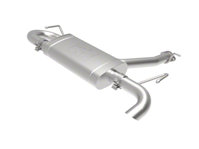 This axle-back exhaust system is constructed of 2-1/2" mandrel-bent 304 stainless steel tubing for maximum strength and durability. This system features a high-flow 304 stainless steel muffler, producing a powerful sound. Optional tips are available. This system produces a powerful sound unleashing all available horsepower and torque. Utilizing a factory style flange and hangers this system is a direct bolt-on system, which requires no cutting or modifications for a hassle-free installation. Utilizing state-of-the-art computer-aided design technology, this exhaust system is designed for custom, high tolerance factory fitment. 100% MIG-Welded for race-proven strength and durability.